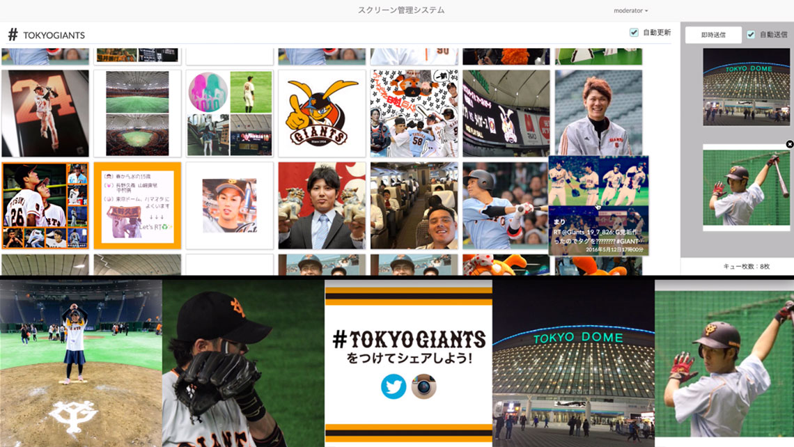 Live-Wall uses public content API to gather and project user photos and comments in real-time from SNS for major media companies, sports leagues, teams and public figures.